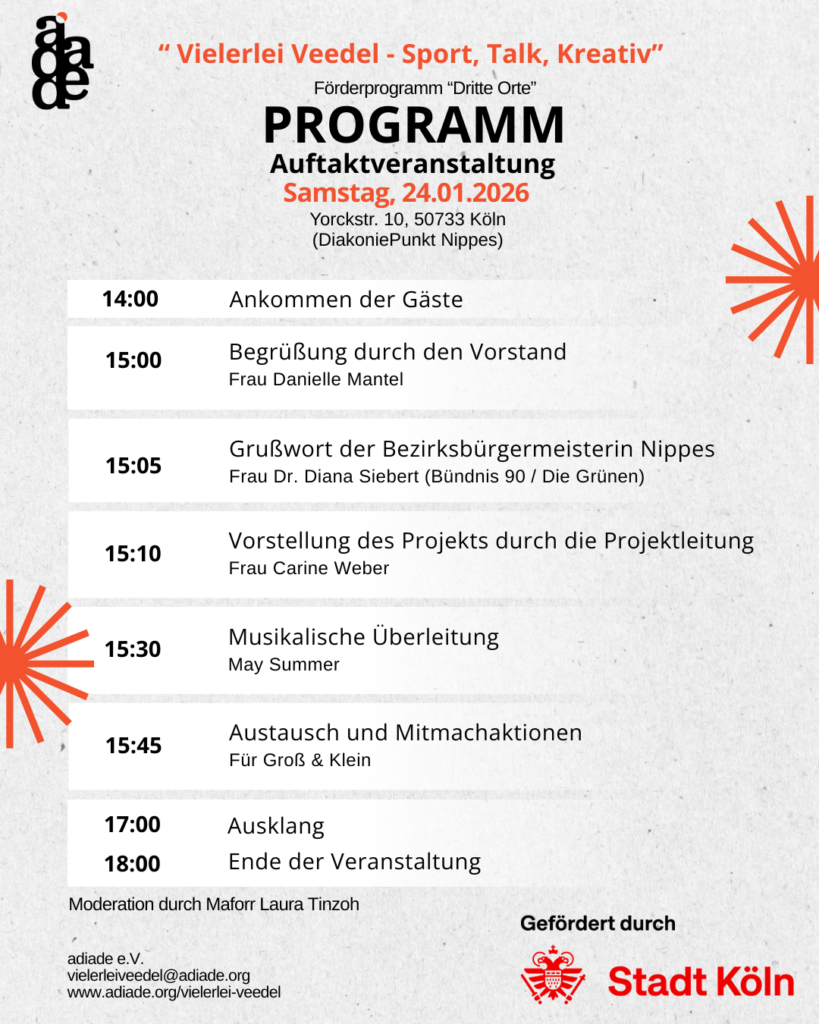 Die Auftaktveranstaltung lädt alle Kölnerinnen und Kölner ein, das Projekt kennenzulernen, mitzumachen und Teil eines offenen, lebendigen und solidarischen Veedels zu werden.